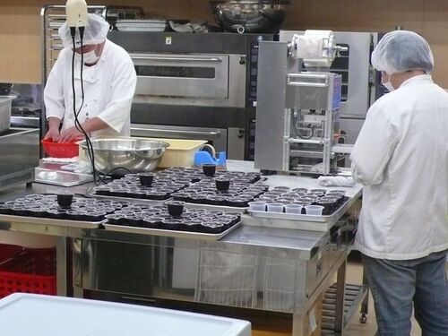 ブルーベリージュレの製造が続いている。夏の職場などでの予約販売、7月27日のブルーベリーまつりでの販売、夏場の人気商品という事情で森の工房みみずく・就労継続支援B型食品班はイソガシイ。 第2森の工房AMAの駐車場の上をアカトンボが飛んでいる。(白…