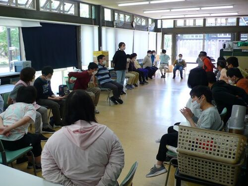 4月28日(木)の午後からは森の工房みみずく、森の工房やのの生活介護の自治会。 みみずくは自治会が終わってストレッチに切り替える。 普段使わない筋肉をしっかり伸ばす。 やのでは自治会で3月に班研修行事が行われたので利用者に感想を聞いて回る。手前の…