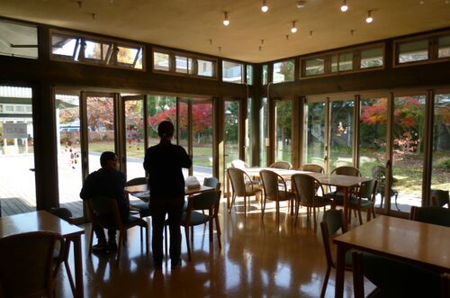 午前中の森の工房AMAの食堂。 ①森の工房みみずく・生活介護けやき班がクリスマスの飾りつけを始めた。 窓ガラスへのデコレートや、 クリスマスツリーを立てて飾りをつけていく。手前に見えるのはミカン箱。 ②同じ食堂で森の工房あやめが大長ミカンを選別し拭…
