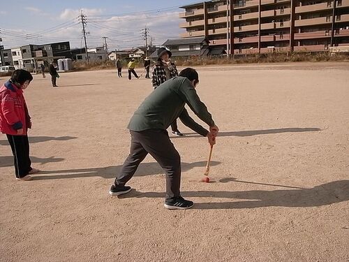 今日は午後から自由活動の日。森の工房やのはスポーツクラブと芸術クラブに分かれて活動。スポーツクラブでは隣の矢野東グラウンドでグランドゴルフ。 天気も良く、日向は動くと少し汗ばむ陽気。一つの球を交代で打っていき、50m先に置かれたゴールを目指す…