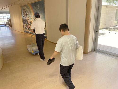 午前中。南区出島にある広島市立広島特別支援学校へ出店販売。(森の工房やの生活介護「もくれん班」) 安芸の郷で作っているブルーベリージャムやクッキー、木工製品などの工芸品を販売した。利用者さんが中心となって接客や商品説明などを行った。 連休明…