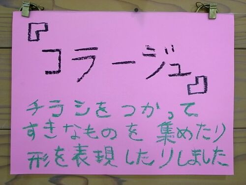 7月22日(火)の芸術クラブで作成したコラージュをシリーズでご紹介。新聞の折り込みチラシを利用して、思い思いに作ったコラージュは、それぞれ個性豊かな作品が出来上がった。 ①作った人:オリーブ班男性 ②作った人:オリーブ班女性 ③作った人:くるみ班女…
