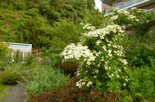 第2森の工房AMAのヤマボウシ。 植えてから11年。今年はたくさん花が咲いた。 今日の東広島市豊栄町のブルーベリー農園。草刈りとブルーベリーの剪定と、 里山の早生のブルーベリー園の区画に防鳥ネットを張った。 ネットの中のスパルタンという品種。少し色…